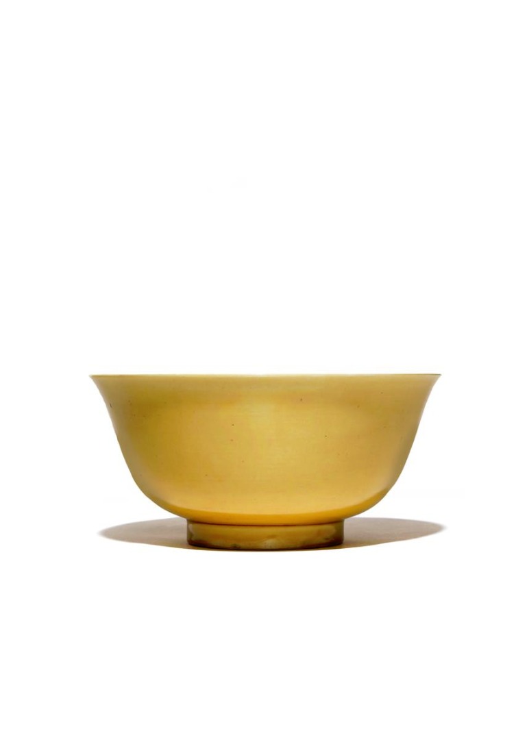 A CHINESE YELLOW GLAZED BOWL KANGXI 1662-1722 The gently flaring body raised on a straight foot