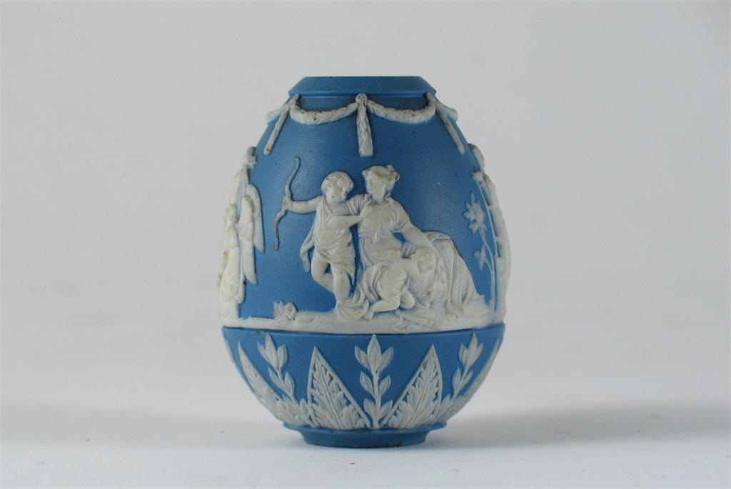 A blue Jasperware bell pull, decorated with a frieze of classical figures, unmarked, probably Wedgwood, 19th century, 5.5cm.