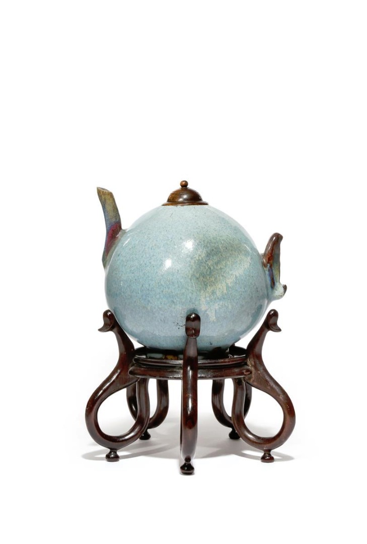 A CHINESE JUNYAO PEACH-SHAPED EWER YUAN/MING The ovoid body with a narrow spout