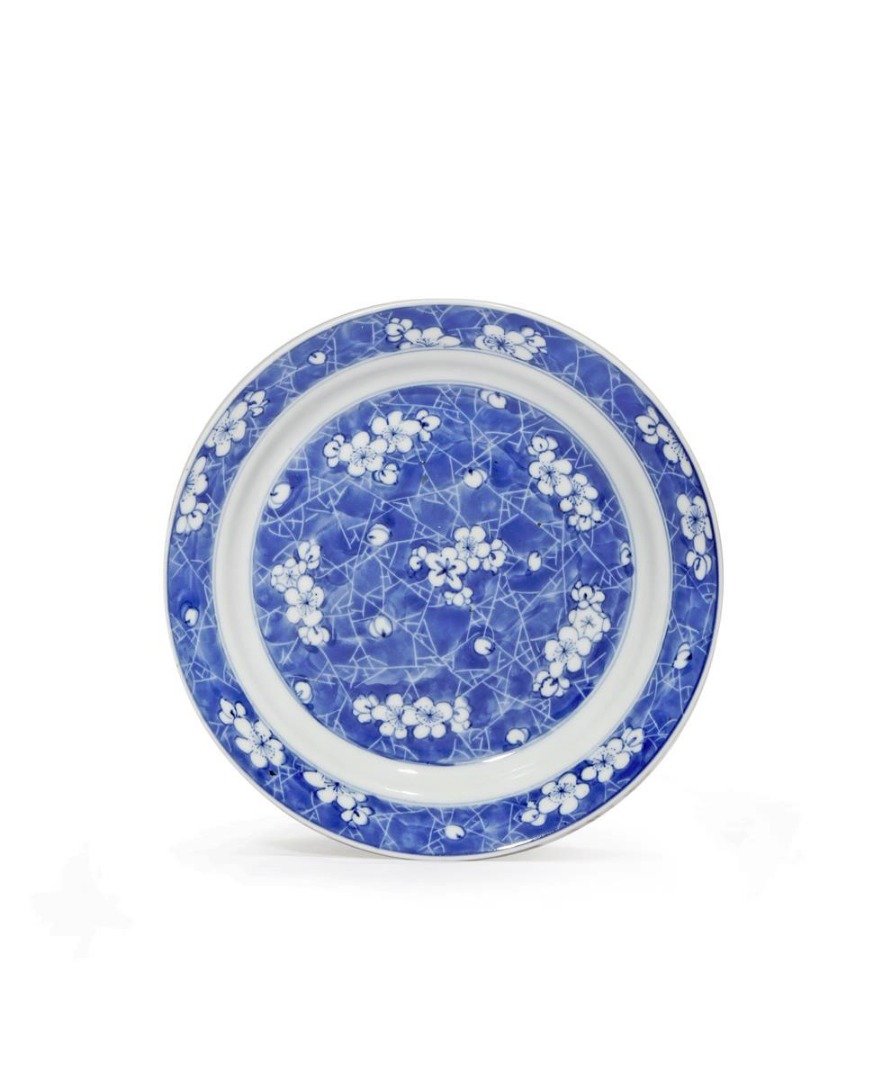 A SMALL CHINESE BLUE AND WHITE DISH KANGXI 1662-1722 Painted with prunus blossoms on a...