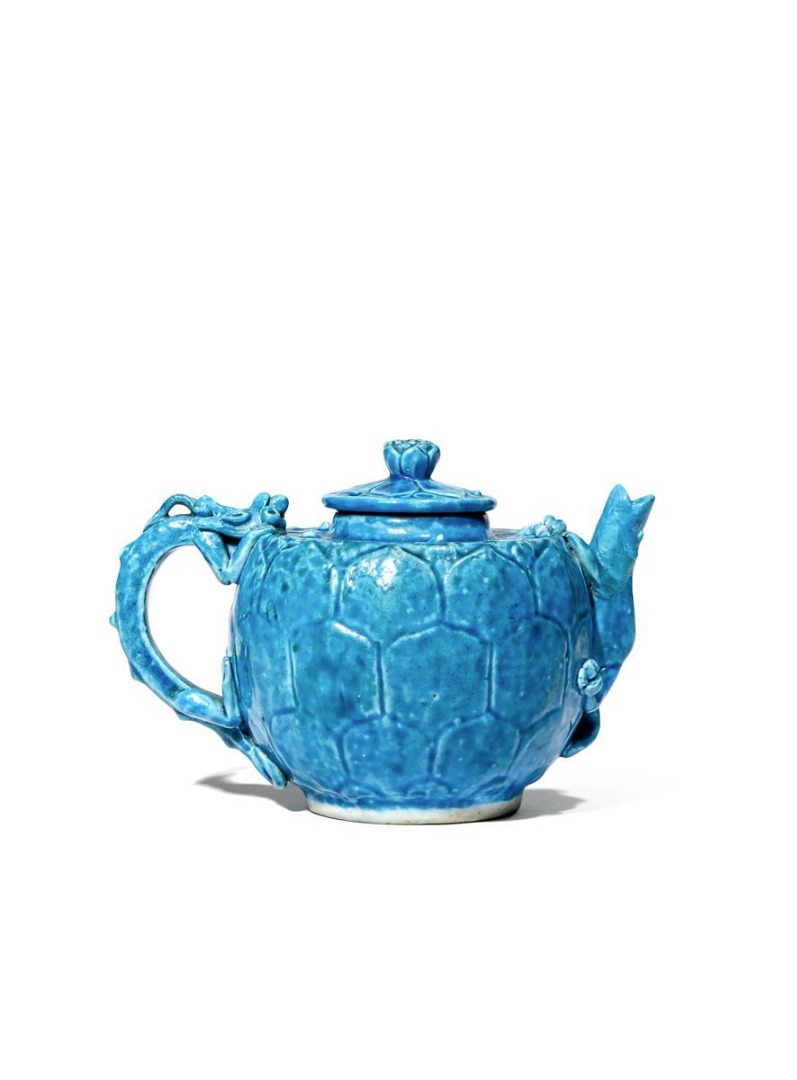 A CHINESE TURQUOISE GLAZED TEAPOT AND COVER KANGXI 1662-1722 The spout modelled as a gecko