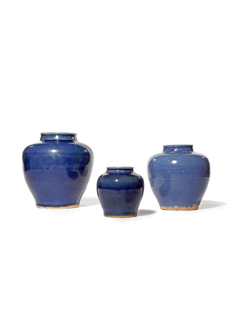 THREE CHINESE BLUE GLAZED JARS