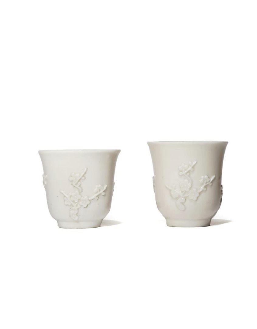 TWO CHINESE BLANC DE CHINE U-SHAPED CUPS 18TH CENTURY Each gently-flaring body decorated in...