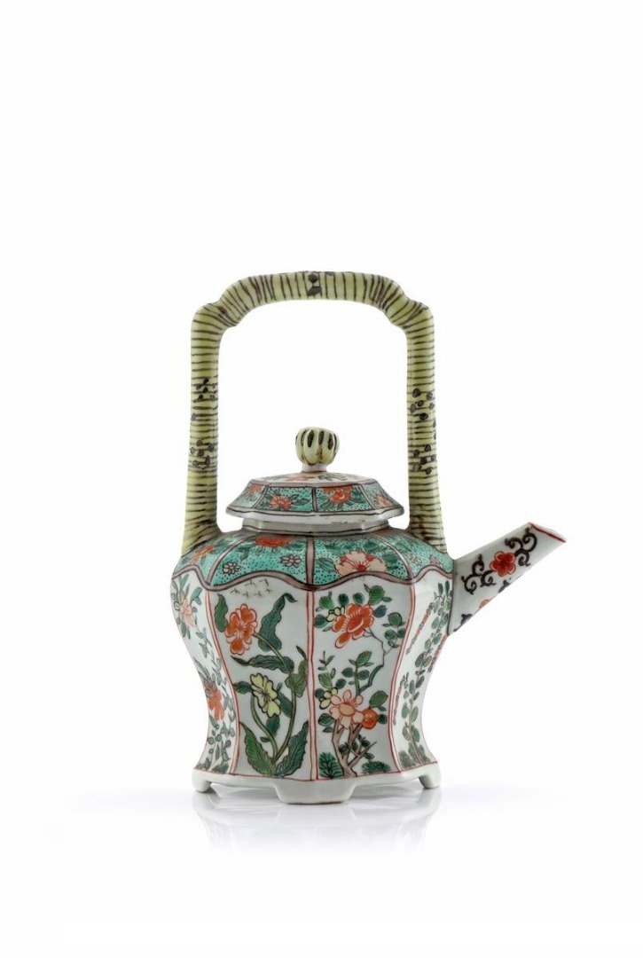 A SAMSON FAMILLE VERTE TEAPOT AND COVER 19TH CENTURY Copying a Kangxi original