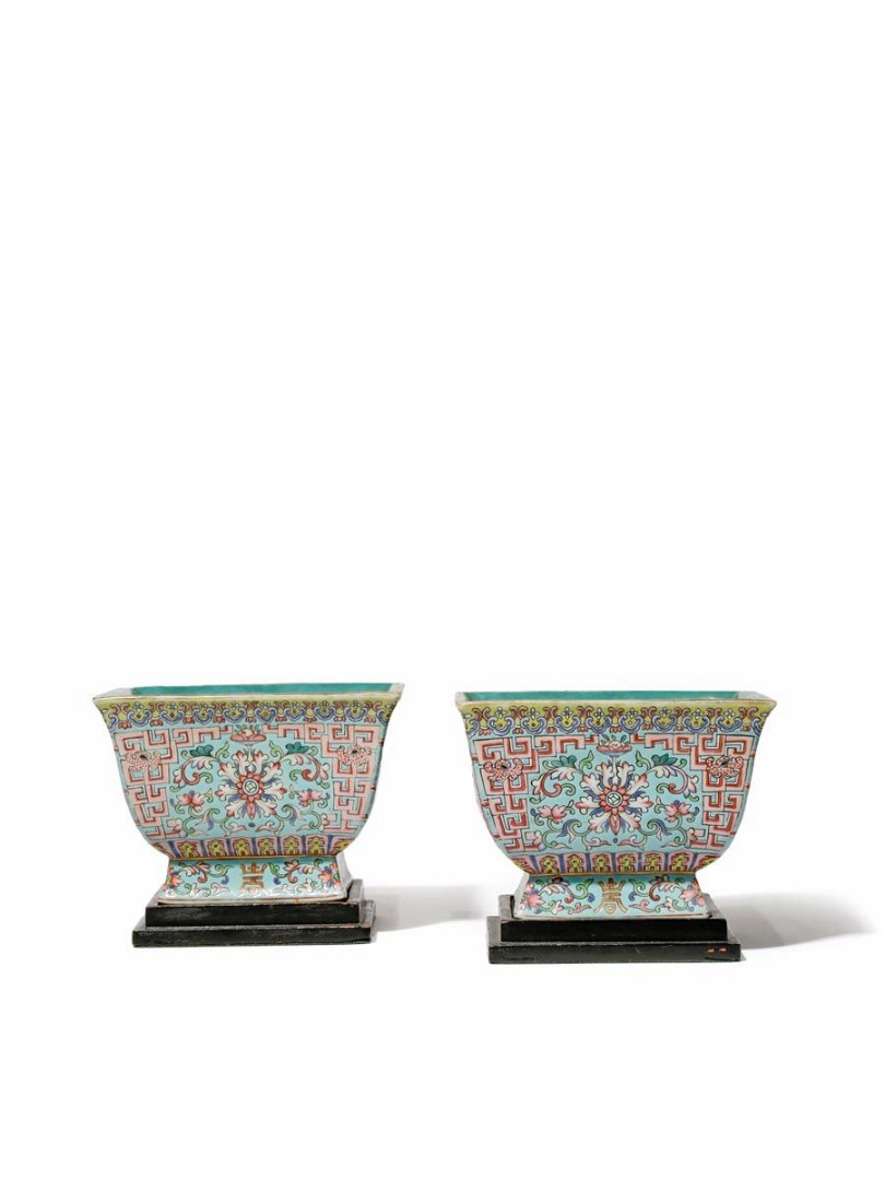 A PAIR OF CHINESE FAMILLE ROSE SQUARE-SECTION BOWLS