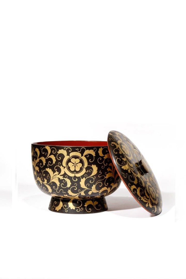 A JAPANESE LACQUER BOWL AND COVER