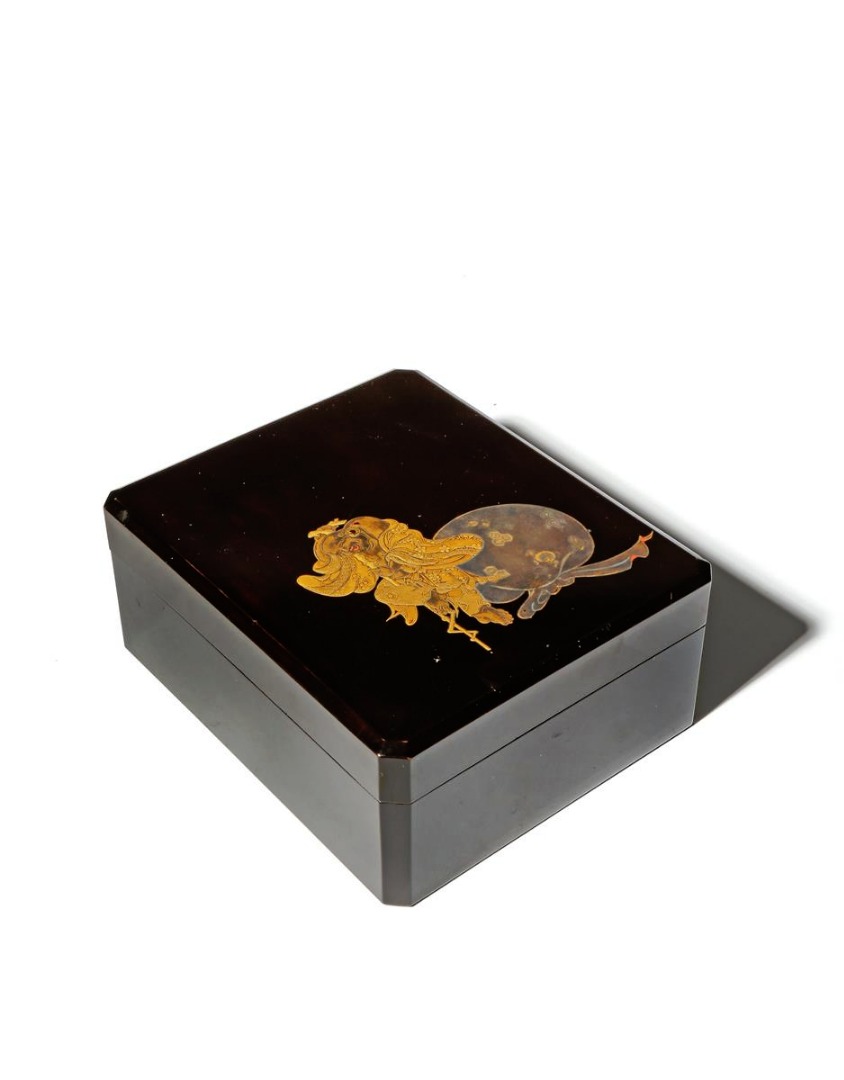 A JAPANESE BLACK AND GOLD LACQUER BOX AND COVER MEIJI 1868-1912 Of rectangular form with...