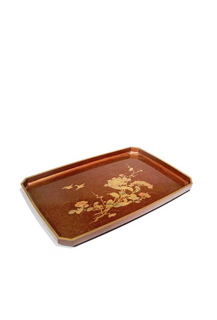 A LARGE JAPANESE LACQUER TRAY MEIJI 1868-1912 The rectangular body decorated with two small birds...