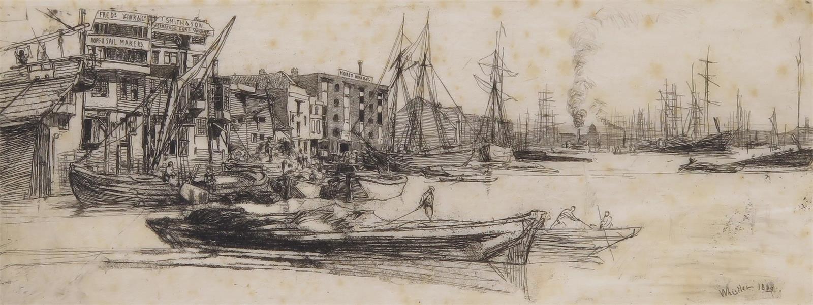 James Abbott McNeill Whistler (American 1834-1903) Thames Warehouses Etching K 38 i