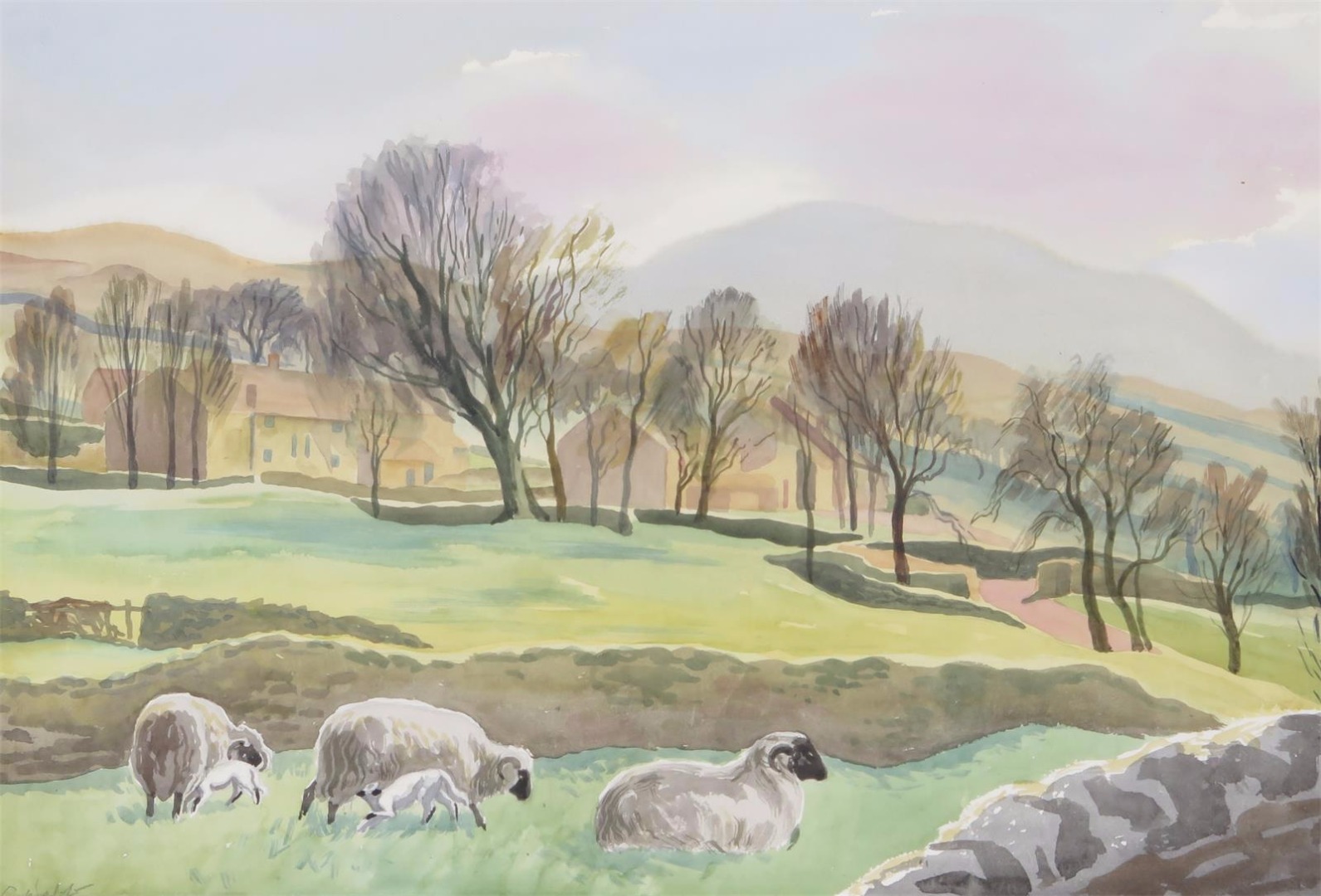 ‡Clifford C. Webb RBA ARE (1895-1972) Sheep grazing in a field Signed Watercolour 36 x 52cm