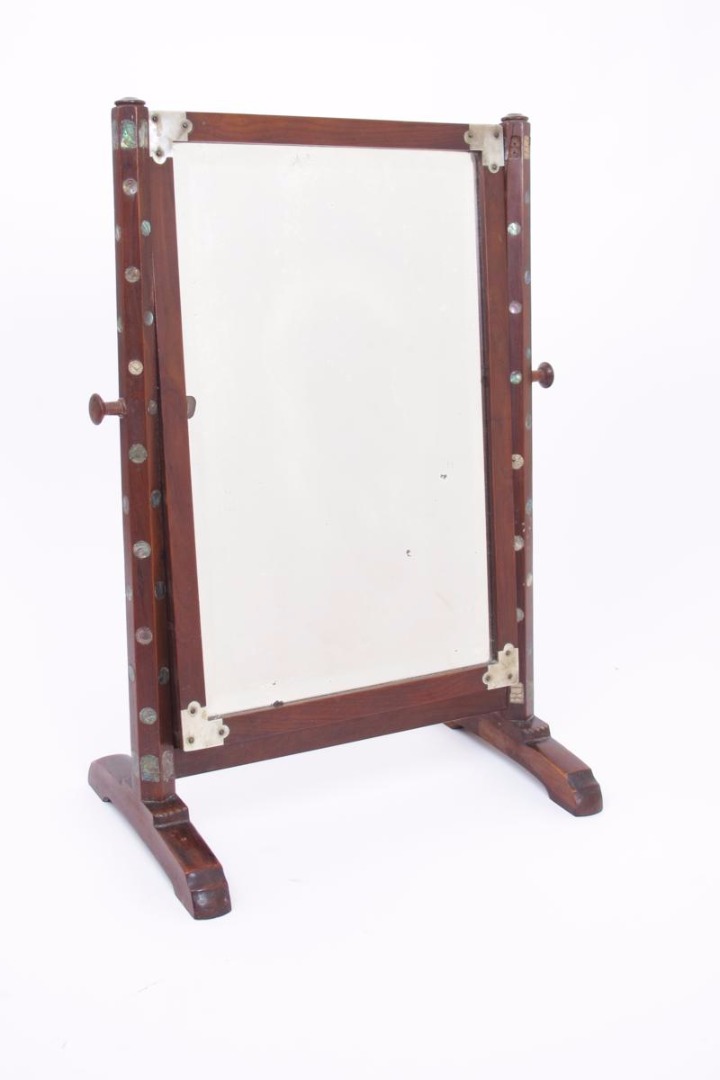 A mother of pearl inlaid walnut dressing table mirror by Sidney Barnsley