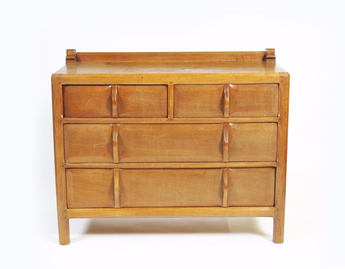 A Gordon Russell oak chest of drawers, rectangular section with low raised back rail, two short drawers above two long, with dowel pegged joints, 106 x 48cm, 87.5cm. high