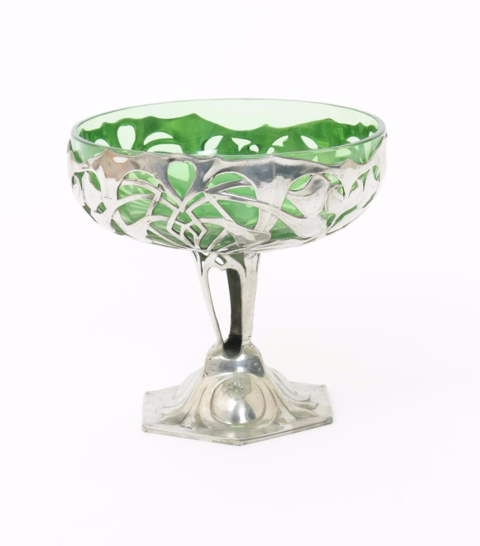 An Osiris pewter and glass coupe designed by Friedrich Adler