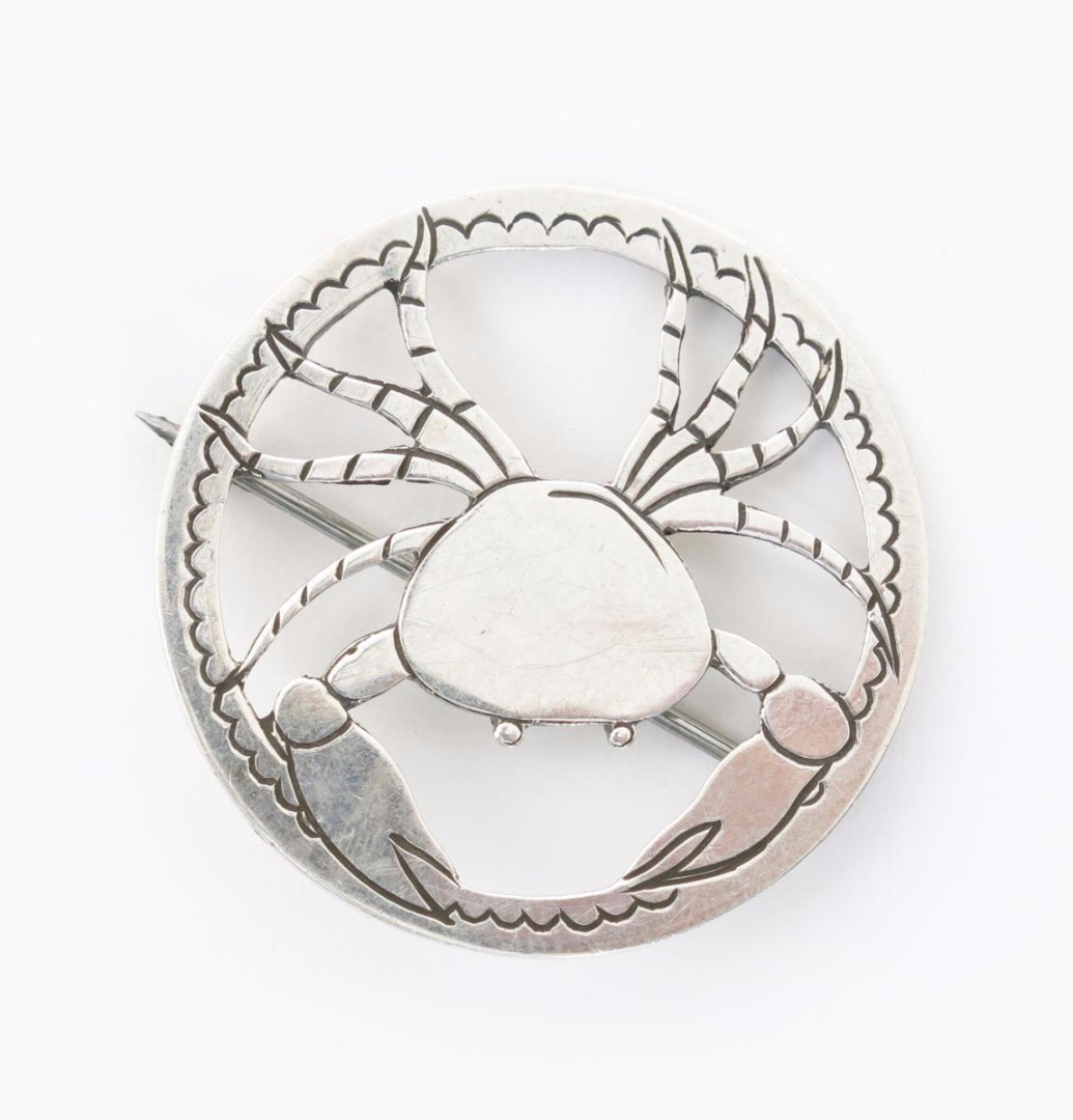 An H G Murphy Falcon Works Cancer silver brooch, circular, cast and pierced with crab motif, stamped marks, London 1935, 3cm. diam.