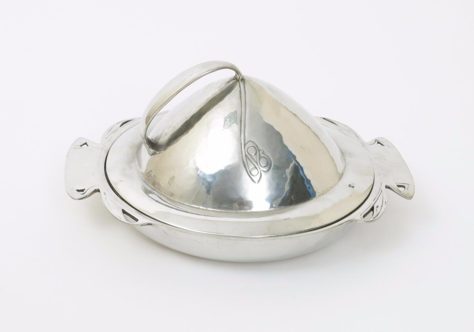 A Liberty & Co Tudric Pewter muffin dish and cover designed by Archibald Knox
