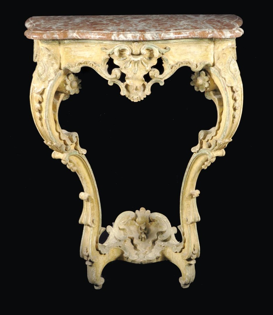 An 18th century continental painted and carved wood console table