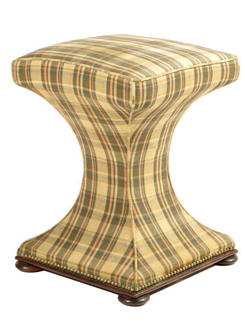 λ A Victorian rosewood hourglass shaped stool, on disc feet, 52.3cm high, 38.5cm square.