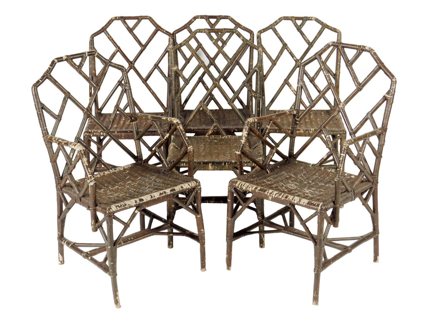 A set of six cane garden chairs by Dryad, each with a lattice back and with an ivorine plaque inscribed 'DRYAD, CANE FURNITURE LEICESTER ENGLAND', comprising: four side chairs and two armchairs. (6)