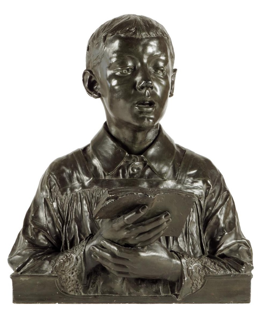 This has been damaged in transport. ‡ Francis H. Aloysius Jahn (1871-1967). A plaster bust of a choirboy, with a bronzed patination, stamped to the back 'F.H.A. JAHN', 55.8cm high, 48.5cm wide.