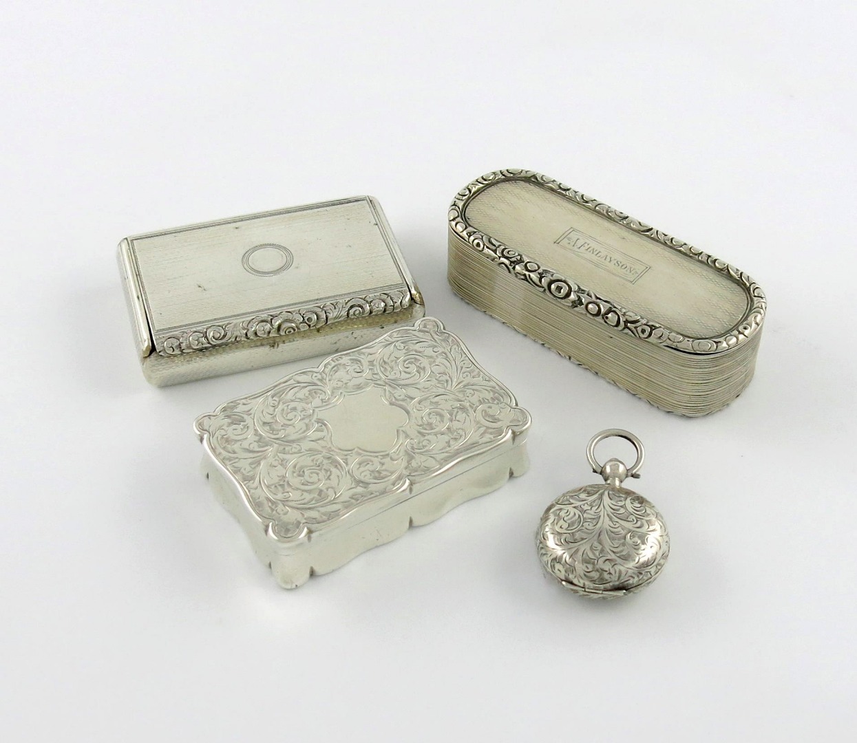 A small collection of three 19th century and Edwardian silver snuff boxes,