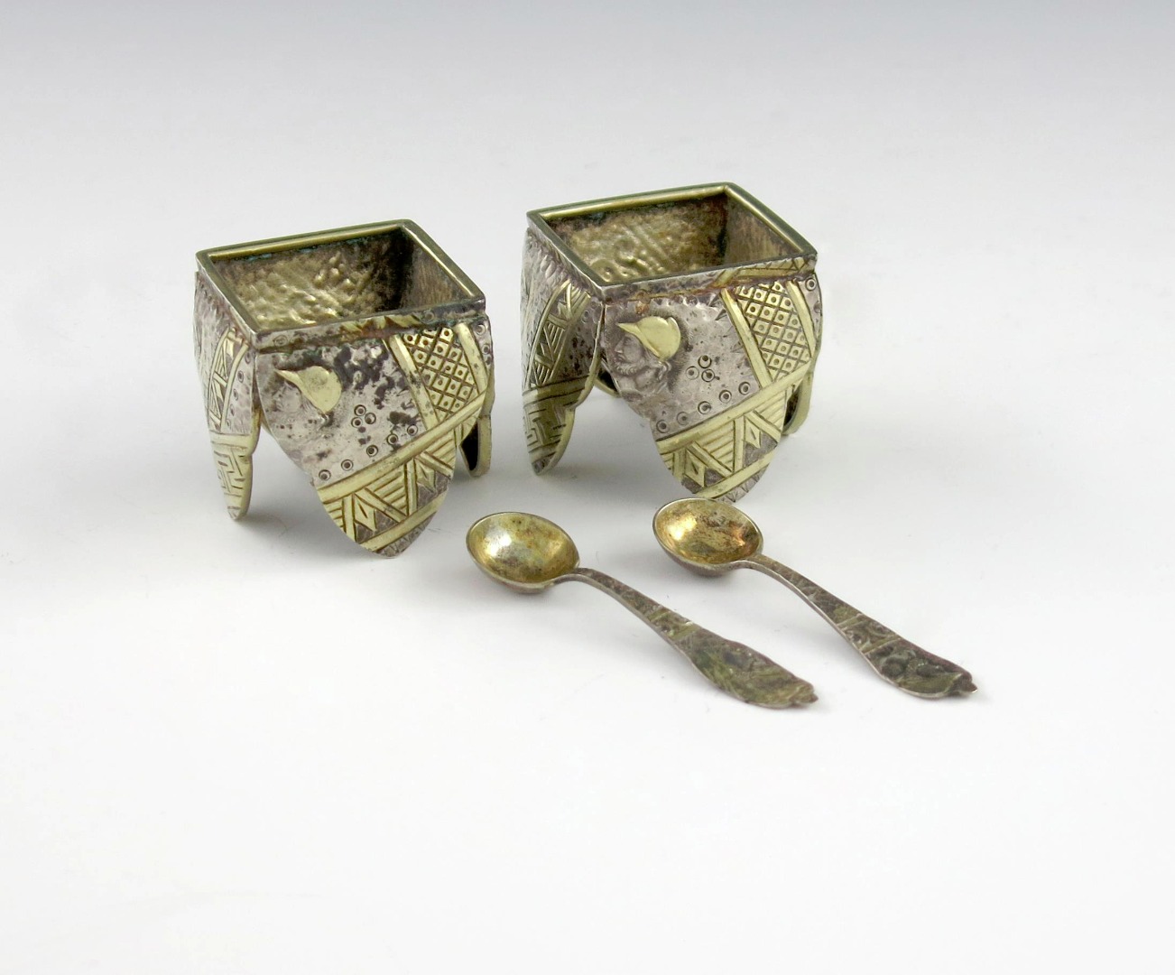 square form, with classical Greek warriors drapes and writing, with spoons, height 3.2cm, approx. weight 3.5oz. (4)