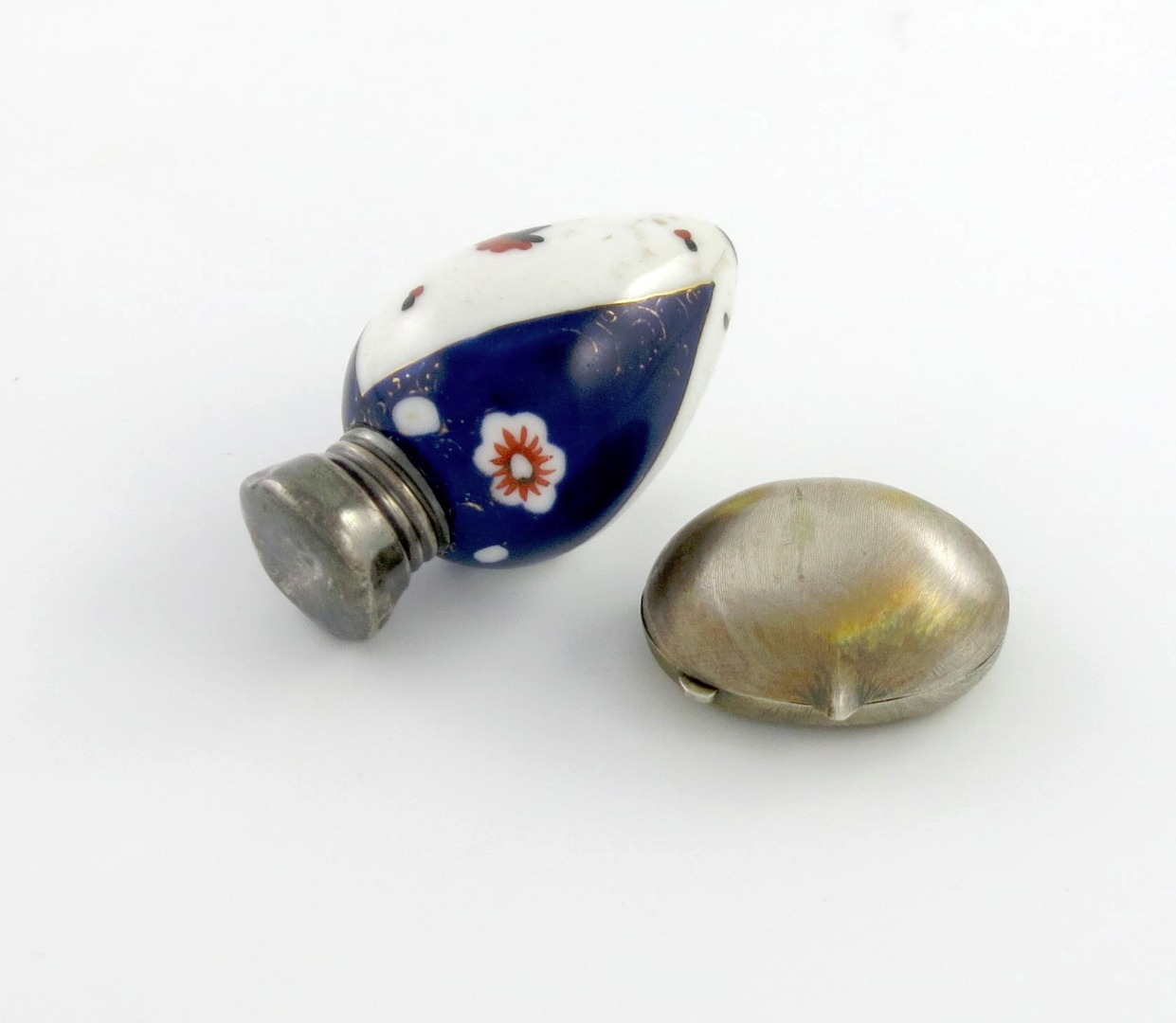 An Edwardian silver-mounted ceramic scent bottle