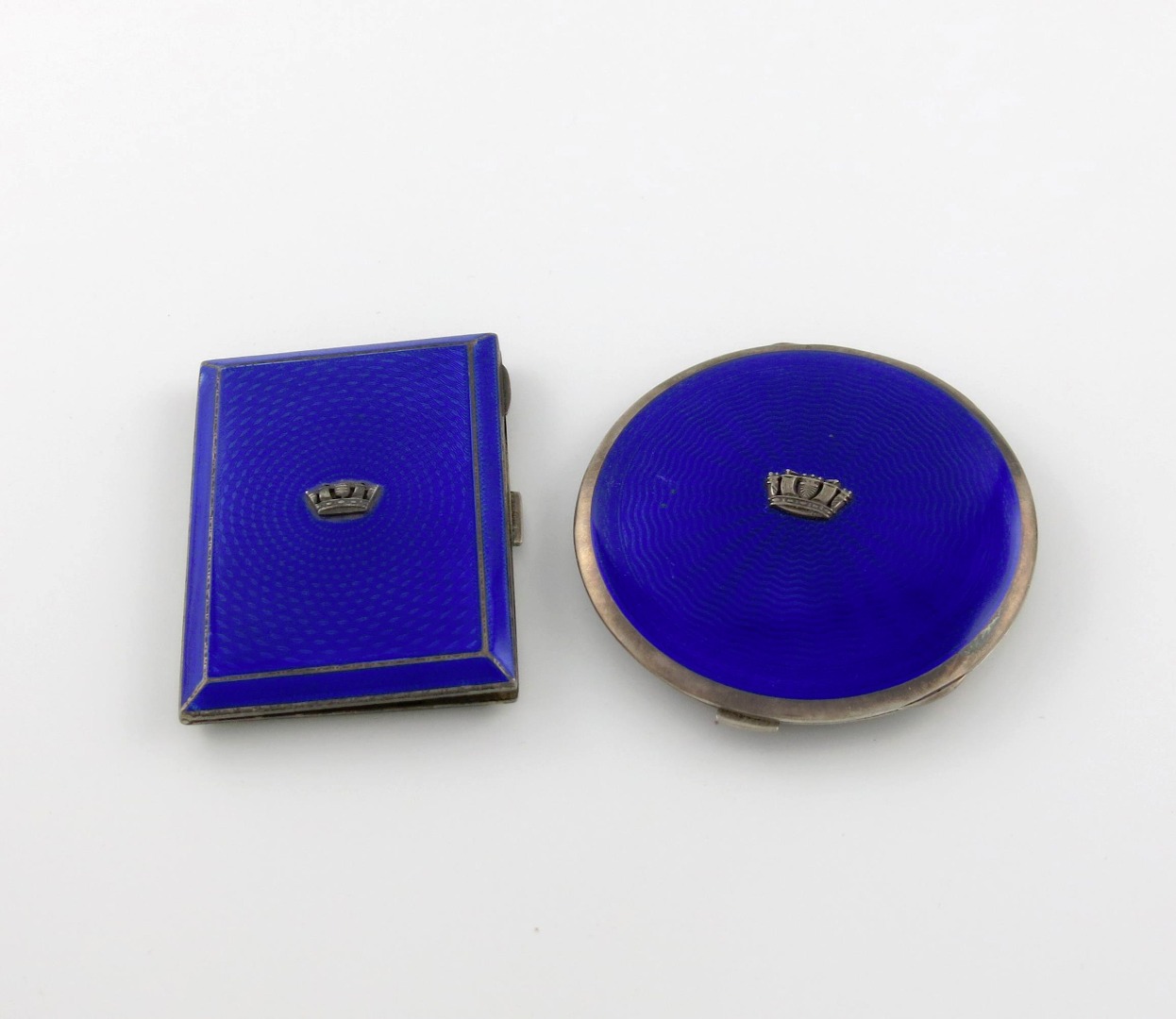 A silver and enamel cigarette case and compact,