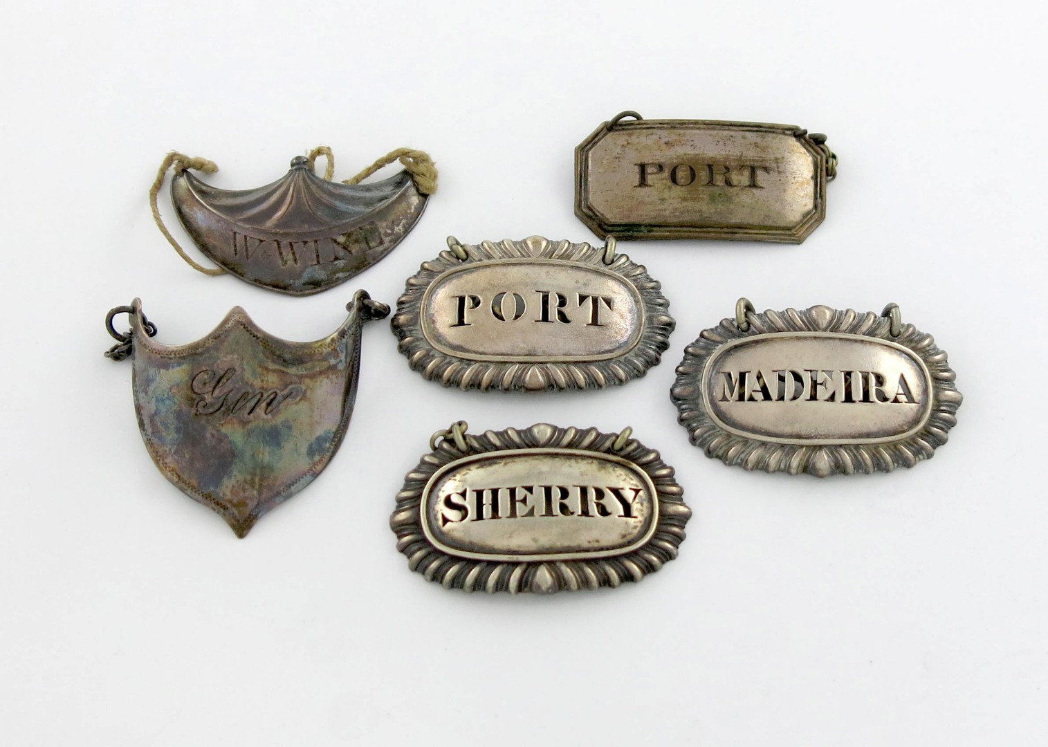 A set of three George IV silver wine labels,