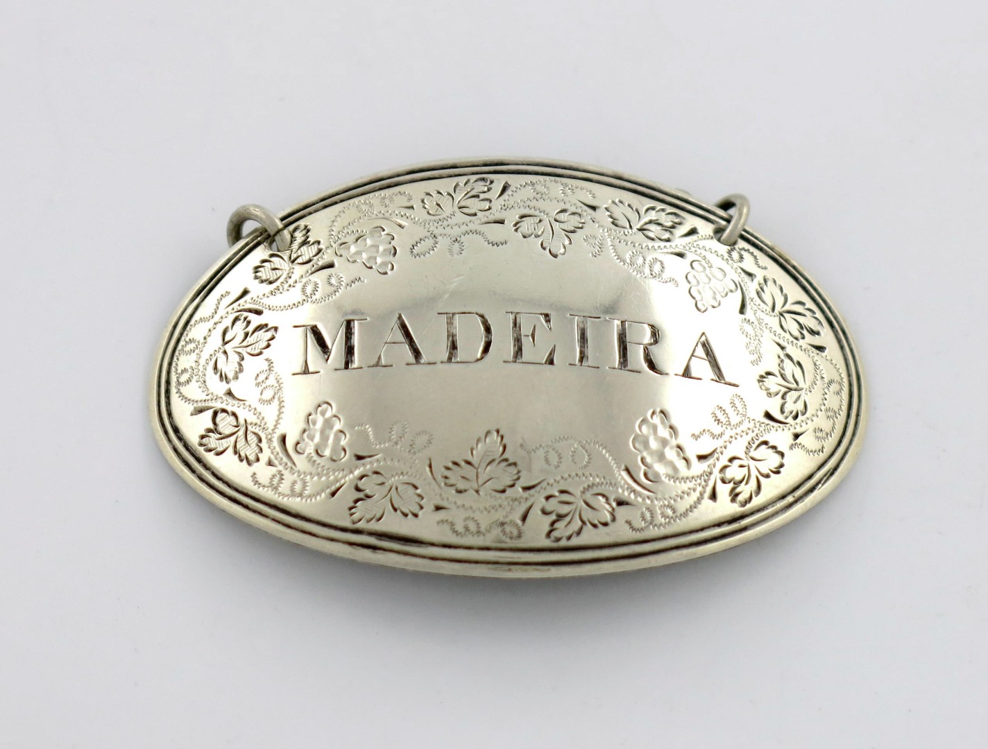 oval form, chased grape-vine decoration, incised and blackened 'MADEIRA', length 5.2cm, approx. weight 0.4oz.