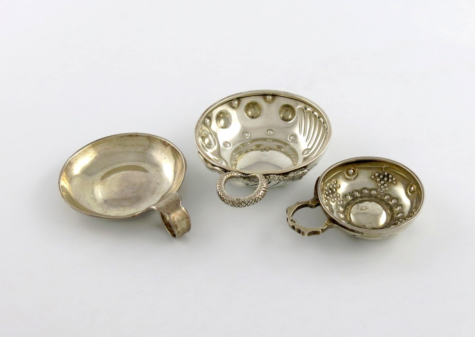 A small collection of three French silver wine tasters