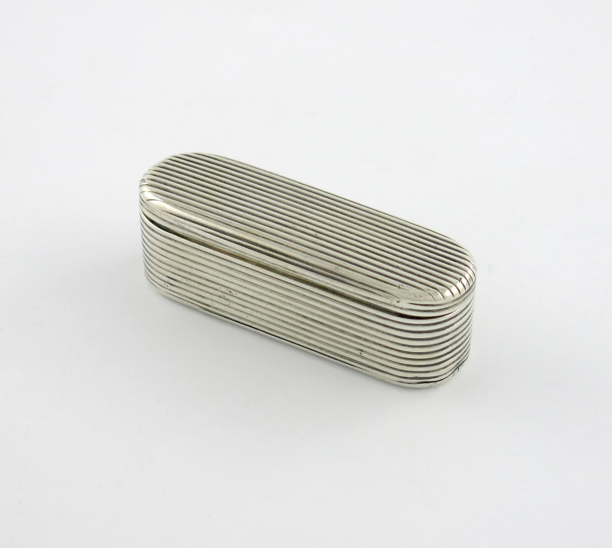 oblong form, with reeded decoration and gilt interior, length 9.2cm, approx. weight 3.2oz.