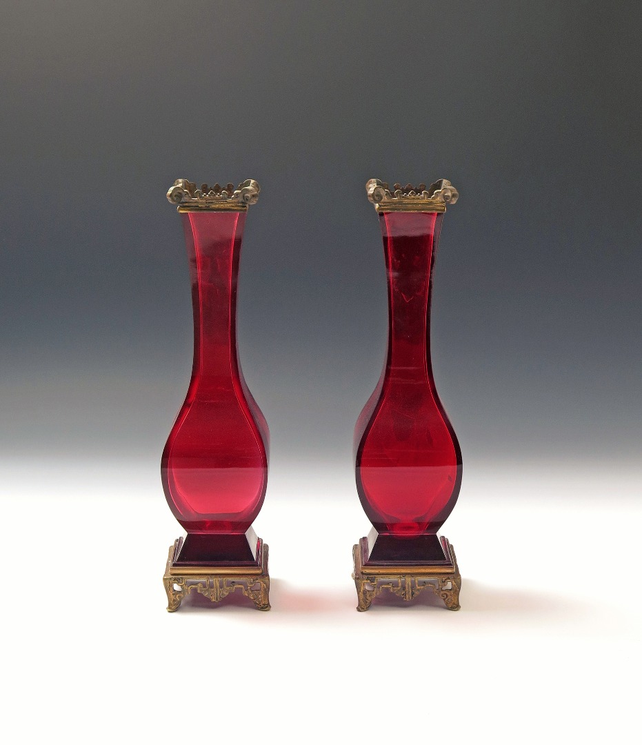 A good pair of Baccarat ormolu-mounted ruby glass vases 19th century