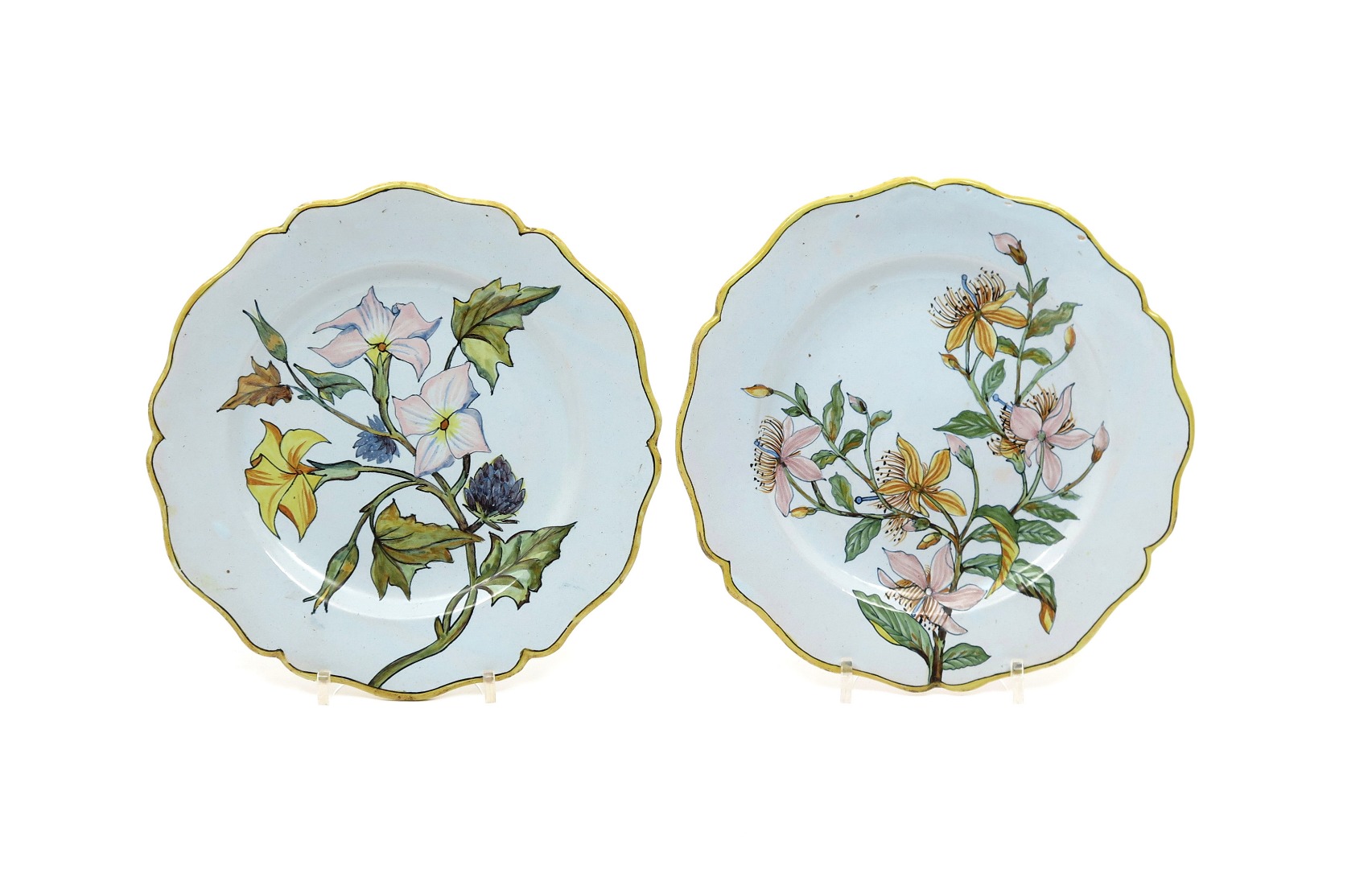 A pair of Porquier-Beau Quimper botanical plates late 19th century