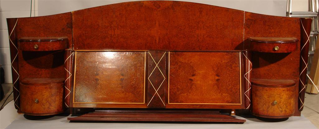 An English walnut veneer double bed with built in side cabinets unmarked headboard 178cm. wide