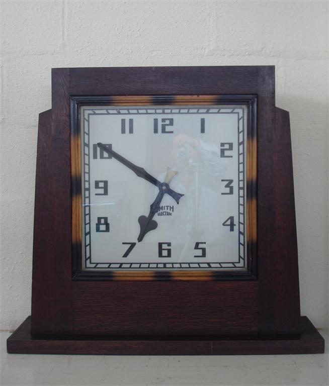 A large Smith Electric clock, wooden case, the dial with Arabic numerals 78cm. high x 86cm wide.