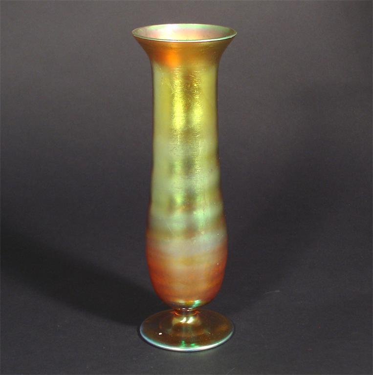 A W.M.F footed glass vase with golden iridescence unmarked 25.5cm. high