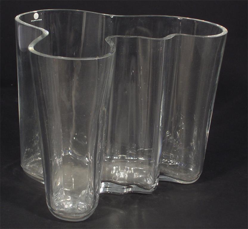 An Iittala Savoy vase designed by Alvar Aalto applied factory label