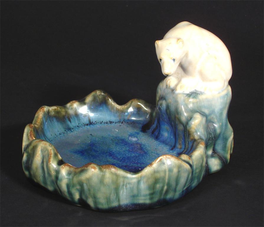 A Doulton Lambeth stoneware bibelot modelled with a polar bear, in colours impressed factory marks 15cm. wide.