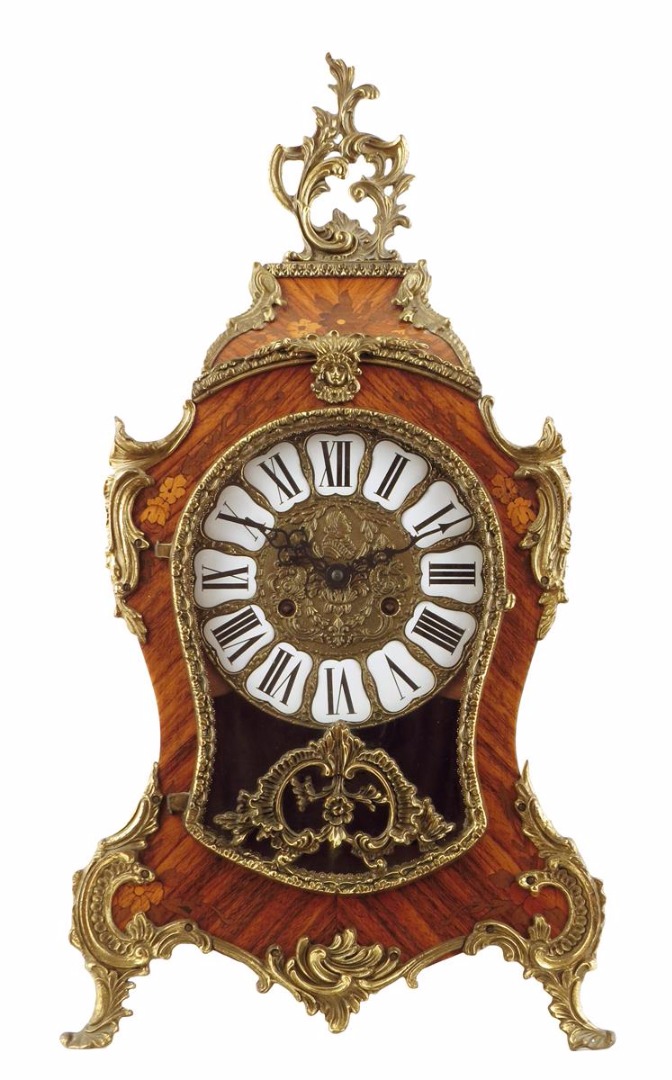 A kingwood and marquetry mantel clock in Louis XV style