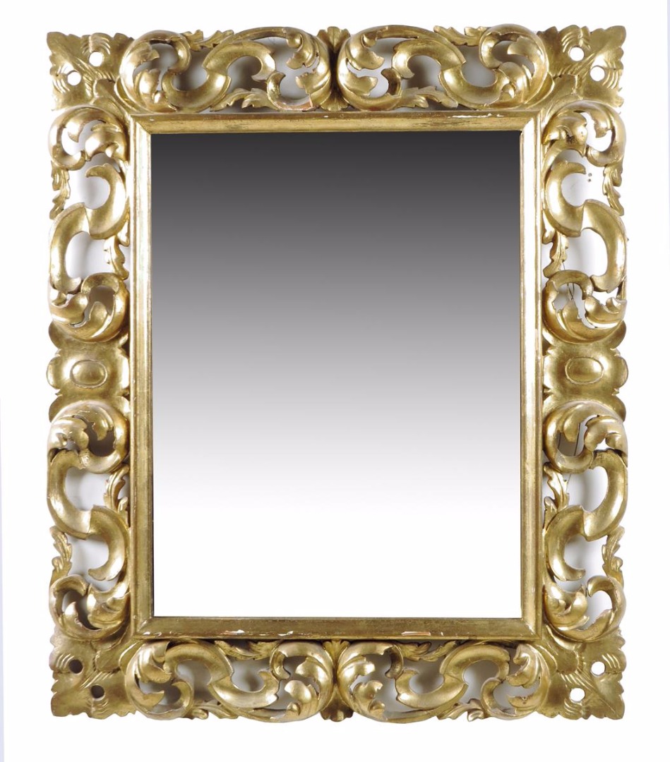 An Italian Florentine carved giltwood wall mirror, the rectangular plate within a scrolling leaf frame, late 19th / early 20th century, 72 x 60.4cm.