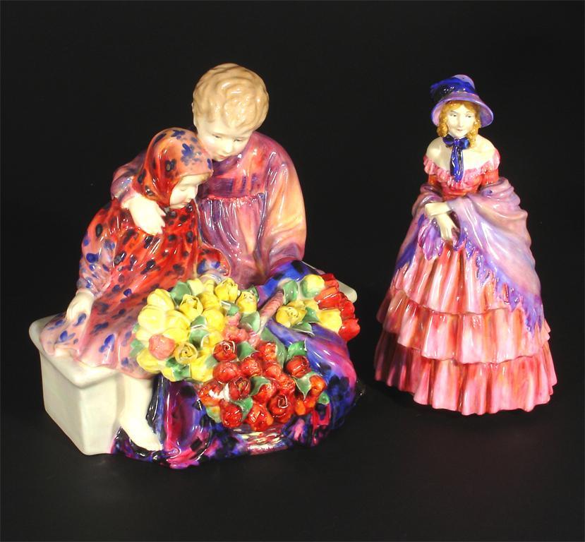 'Flower Seller's Children' HN.1342 and 'Victorian Lady' HN.728 two Royal Doulton figures