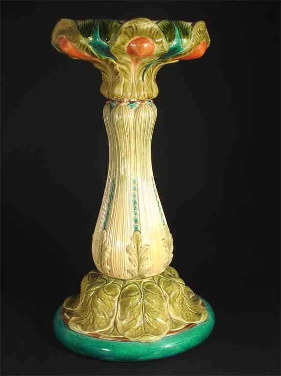 A Bretby jardiniere stand modelled in low relief with foliage sprays
