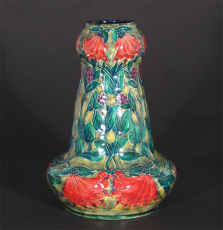 A Morrisware vase designed by George Cartlidge, pattern C18-5, painted in colours printed factory mark, facsimile signature, hairline from top rim 24cm. high