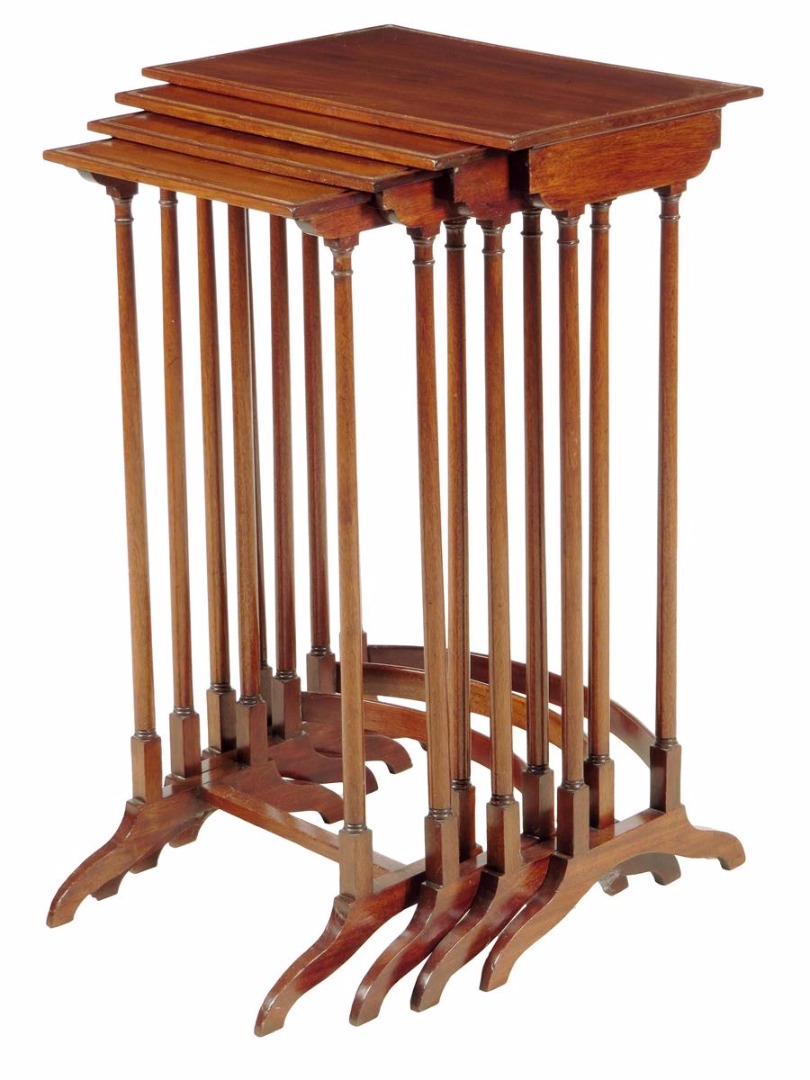 A quartetto nest of 19th century mahogany occasional tables, each with a beaded top on turned column supports, 73.5cm high, 45.7cm wide, 35.2cm deep. (4)