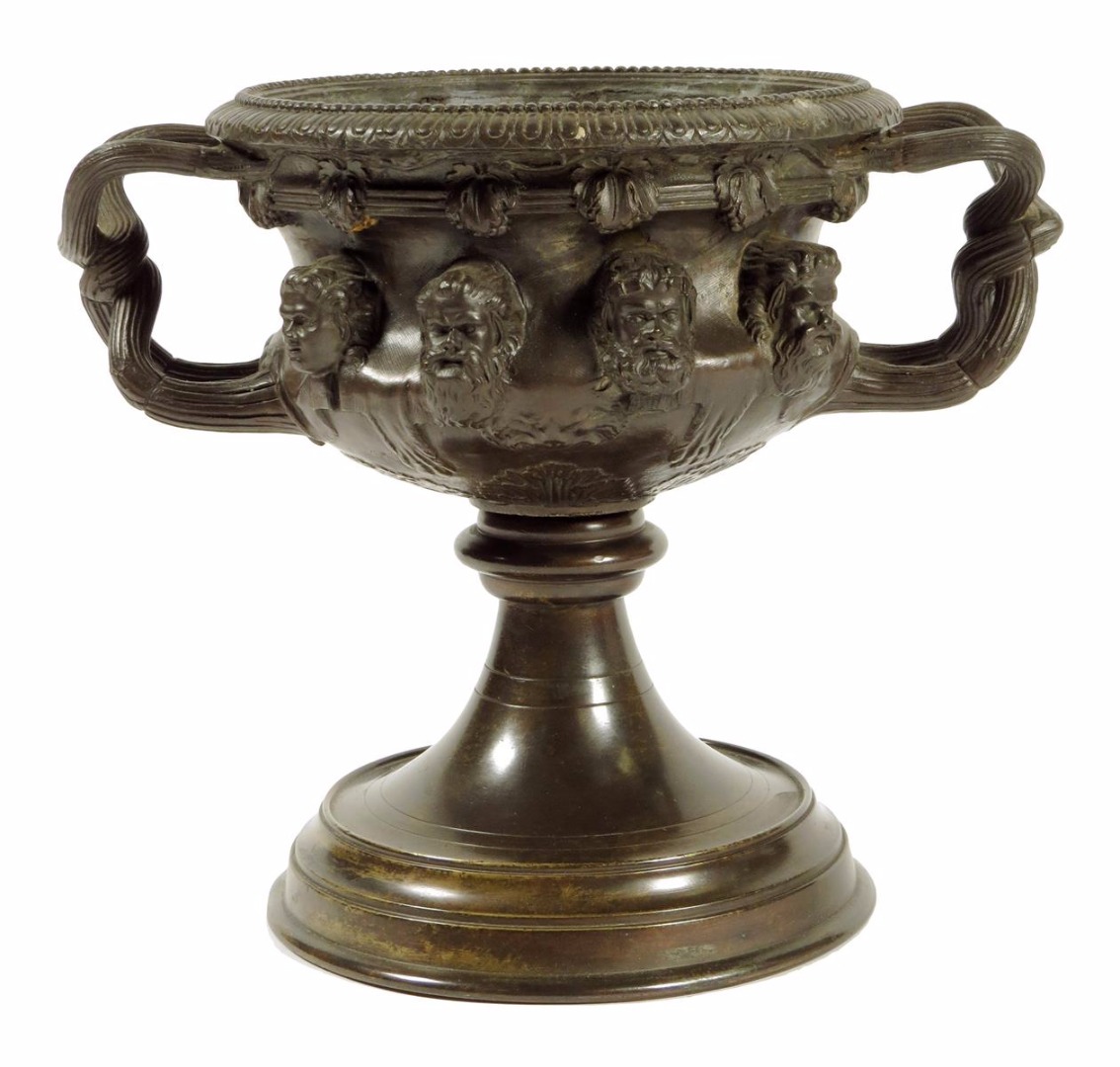 After the antique. A late 19th century bronze model of the Warwick vase, 22.5cm high, 27cm wide.