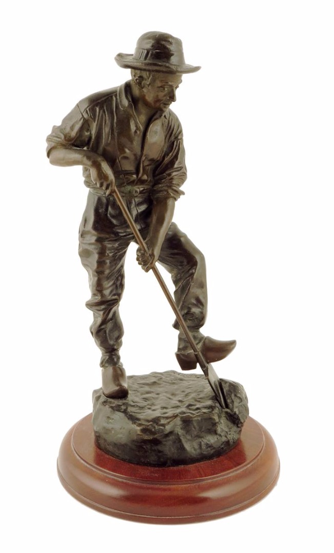 Jean Garnier (French 1853-c.1910). A bronze figure of a Dutch farmer, working the soil, the naturalistic base signed 'J. GARNIER' and with 'BRONZE GARANTI' pastille, on a later mahogany plinth, 32.5cm high.