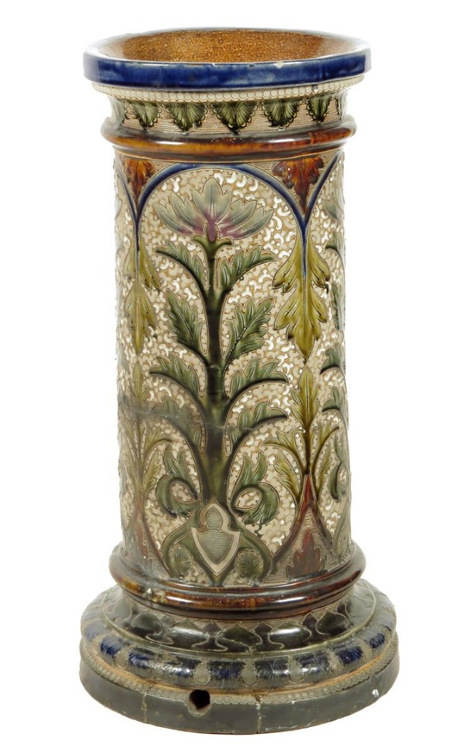 A late Victorian Fulham pottery stoneware stickstand, with moulded mark to base, 68cm high, 34.7cm diameter.