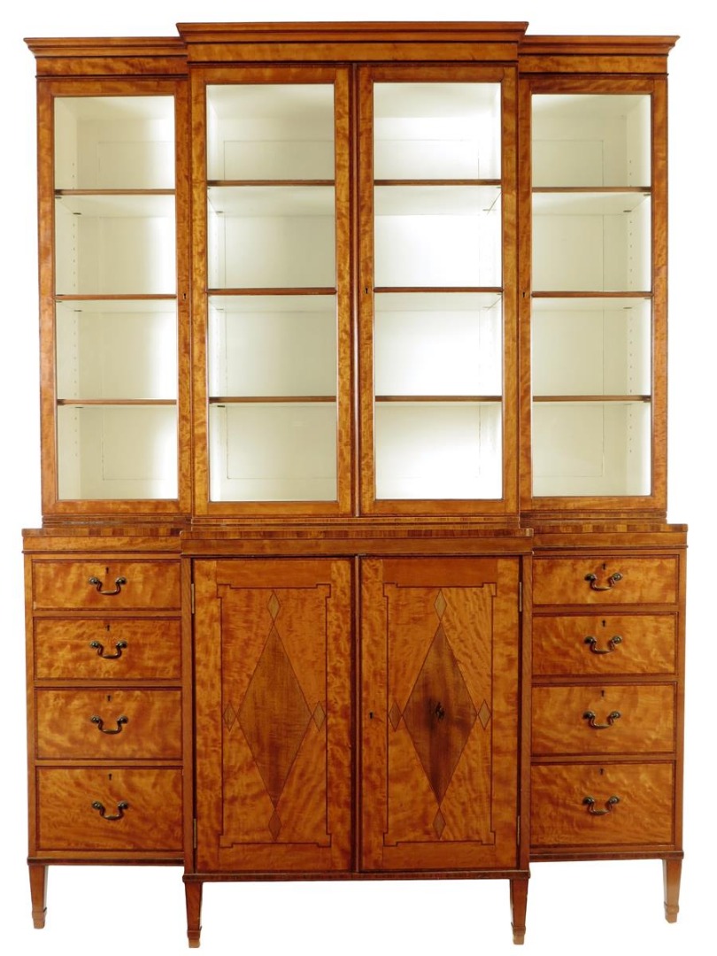 λ An Edwardian satinwood breakfront bookcase in Sheraton style