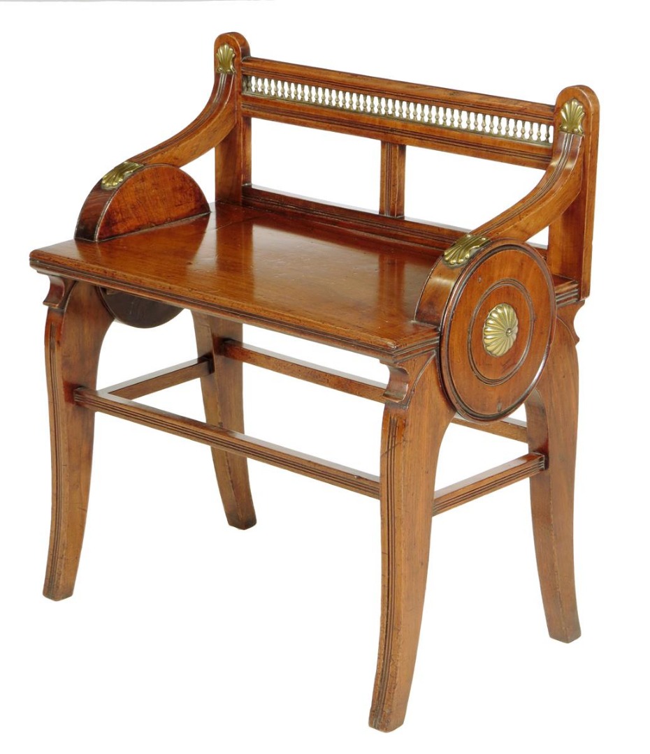 A late Victorian walnut and brass mounted hall bench attributed to James Shoolbred & Co.