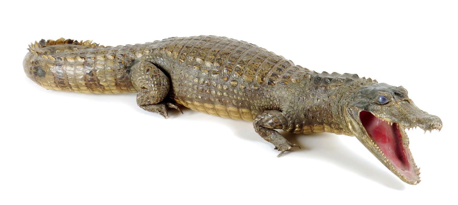Taxidermy. An early 20th century preserved Nile crocodile, 78.5cm long.
